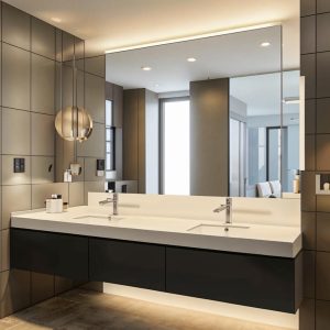 - Зеркала могут стать ярким акцентом в интерьере, подчеркивая общий стиль и атмосферу ванной комнаты.